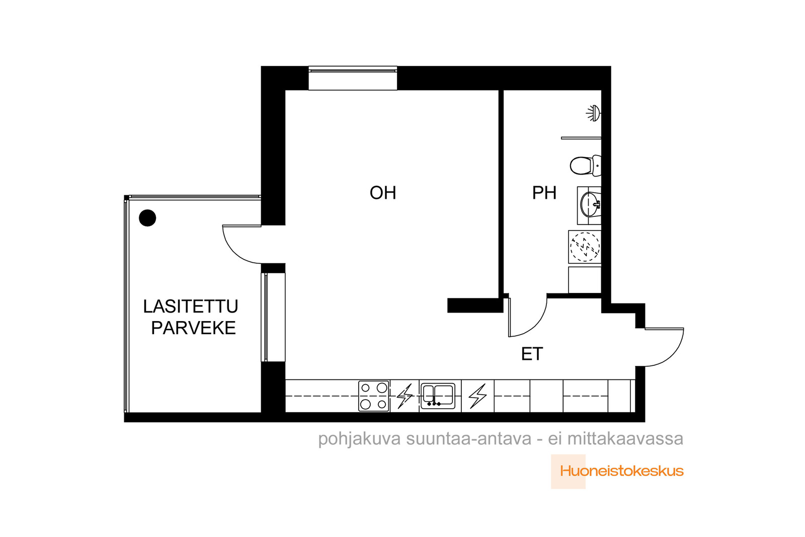 - Erillisuuni, jääkaappipakastin, mikroaaltouuni, liesituuletin, astianpesukone, ja kiinteät valaisimet
