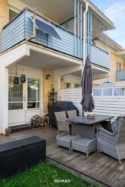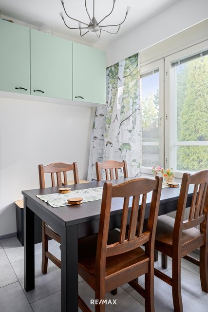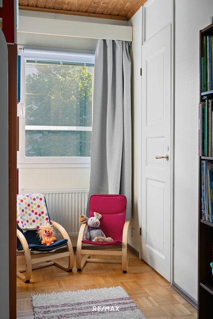 Tämä koti vapautuu nyt seuraavalle omistajalleen. Asunnossa on viime vuosina remontoitu kylpyhuone ja keittiö, joten huoneiston isommat remontit on jo tehtynä. Asuinpinnat päivittämällä saat tästä asunnosta itsellesi mieluisan kodin. Asunnossa on erillinen keittiö, jossa on hyvin kaappitilaa ja paikka pöydälle. Iso olohuone on tällä hetkellä jaettu väliseinällä, jonka myötä asuntoon on saatu kolmas makuuhuone. Väliseinä on helposti myös poistettavissa. Olohuoneesta on käynti omalle suojaisalle pihalle, jossa on mukava nauttia kesäpäivistä. Yläkerrassa on kaksi isoa makuuhuonetta, joista toisen yhteydessä on vaatehuone ja toisen yhteydessä parveke. Tyylikäs kylpyhuone ja omassa saunassa nautit löylyistä vaikka joka päivä. Asunnolle kuuluu ulkovarasto ja taloyhtiön parkkialueelta on mahdollista vuokrata autopaikkoja.