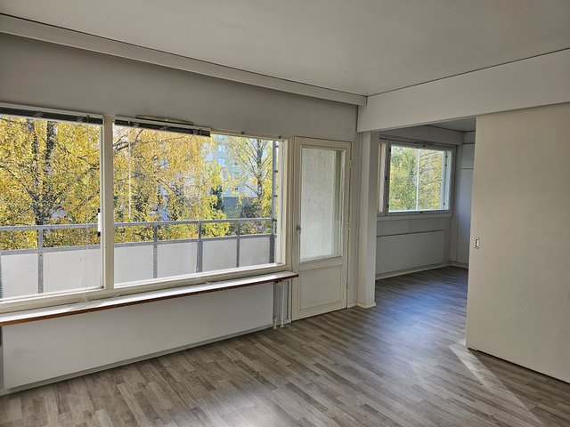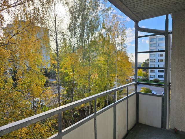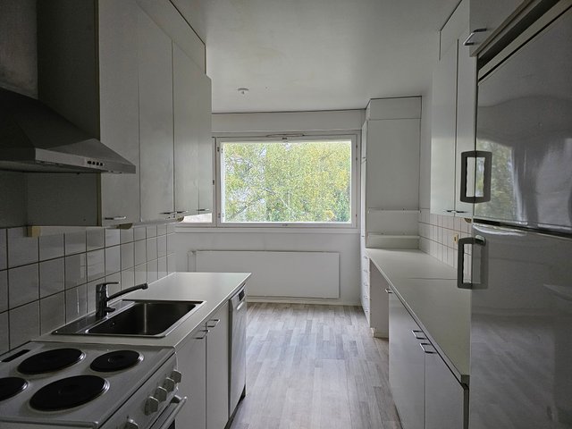 Tässä läpitalon kolmiossa on iso olohuone, josta käynti parvekkeelle. Hyvänkokoiset makuuhuoneet, joista toisen yhteydessä on ikkunallinen vaatehuone. Kauniit maisemat. Keittiössä on runsaasti kaappitilaa ja paikka kookkaammallekin ruokapöydälle. Oikein asiallinen ja heti vapaa koti, tervetuloa tutustumaan!