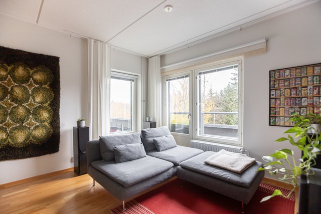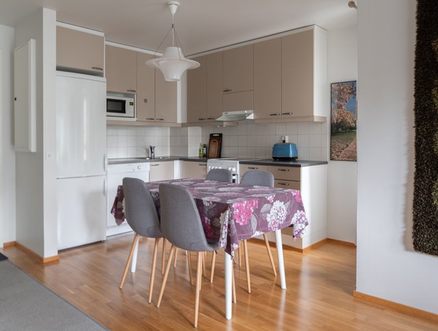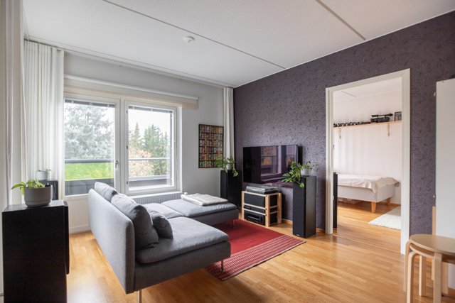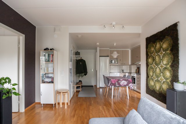 Tervetuloa tutustumaan tähän, pohjaltaan hyvin suunniteltuun hyväkuntoiseen kaksioon, jossa kaikille toiminnoille on tilaa. Olohuoneen ja avoimen keittiötilan välissä on hyvä tila kunnon ruokapöydälle, olohuone on helposti kalustettavissa ja makuuhuone on niin tilava, että tarvittaessa sinne voi sijoittaa vaikka työpöydän. Säilytystilaa on sekä kaapeissa että vaatehuoneessa ja asumismukavuuden kruunaa oma sauna ja ranskalainen parveke. Hissillä pääsee esteettömästi tähän 2. kerroksen asuntoon. Vuonna 2012 valmistunut taloyhtiö on hyvin hoidettu, eikä isoja remontteja tarvitse vielä pelätä.