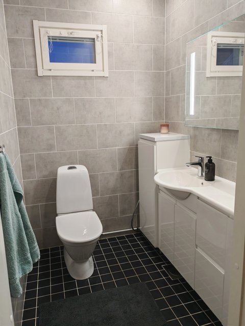- WC-istuin, suihku (x2), lattialämmitys, peili, pesuallas, allaskaappi, ja bidee-suihku
