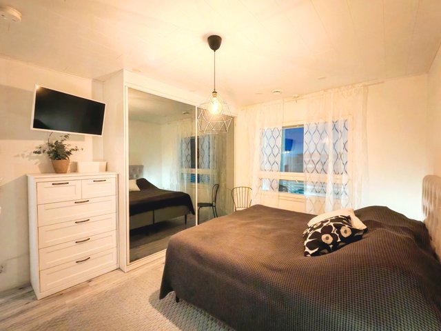 - Makuuhuoneissa ja eteisessä peililiukuovikaapit