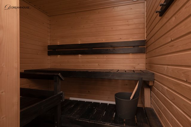 Remontoitu kylpyhuone on tyylikäs ja harmoninen jossa tilaa on myös esimerkiksi pesutornille. Oma sauna tuo ripauksen luksusta arkeen.