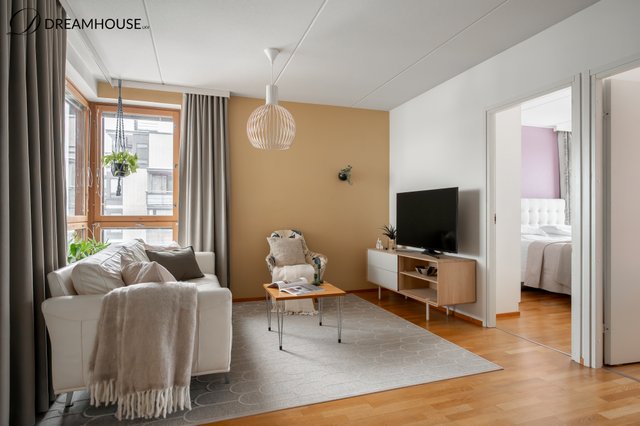 Tervetuloa tutustumaan tähän hyvin suunniteltuun kolmioon Viikinmäen rauhallisella ja vehreällä alueella. 65,5 neliömetrin kokoinen koti tarjoaa toimivan pohjaratkaisun: kaksi makuuhuonetta, tilava keittiö ja muunneltavan olohuoneen sekä oman saunan, joka tuo arkeen ripauksen luksusta.