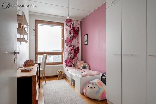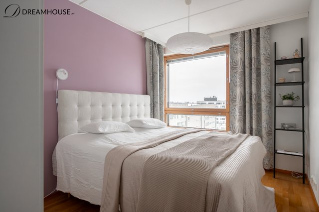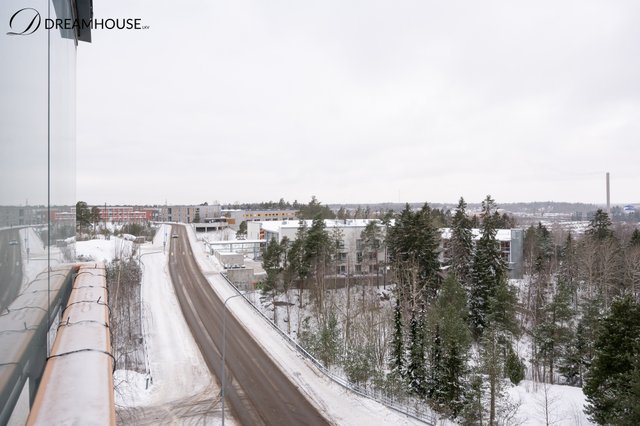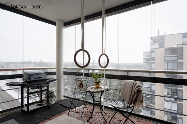Asunto sijaitsee viidennessä kerroksessa, ja iso lasitettu parveke avautuu avarille näkymille – täydellinen paikka nauttia aamukahvista tai ilta-auringosta ympäri vuoden.