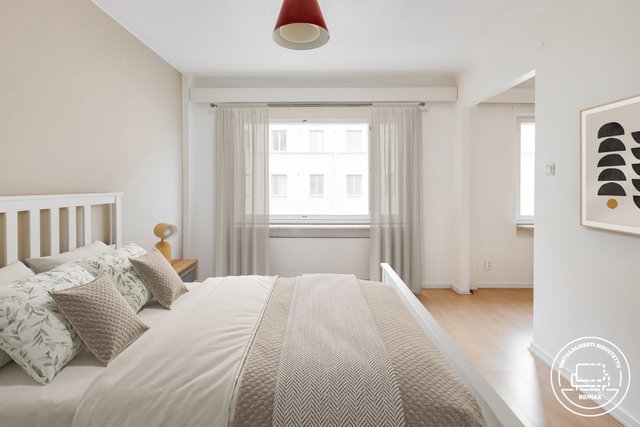 - Ostajan niin toivoessa, asunnon makuuhuoneessa myyntihetkellä oleva sänky ja kylpyhuoneessa oleva pyykinpesukone.