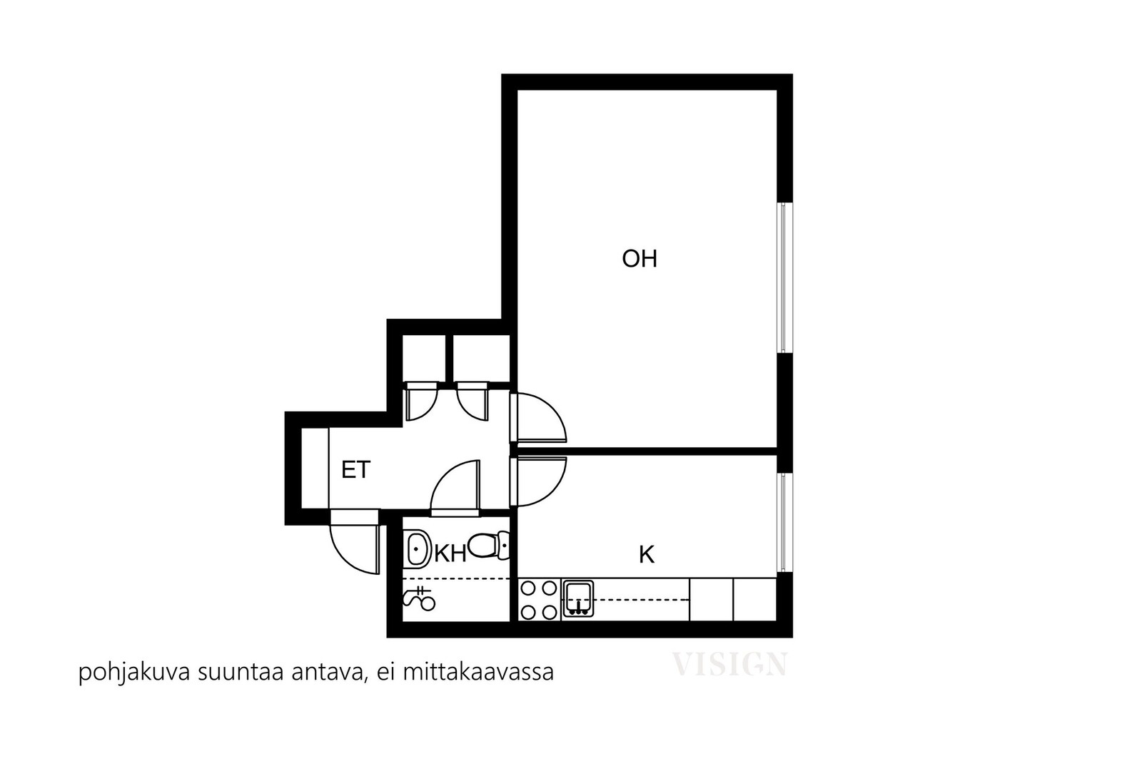 Tilava yksiö omalla keittiöllä, 3.ylin kerros, talossa ei ole hissiä.