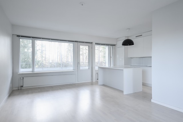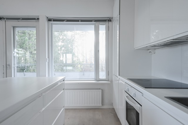 Avokeittiö on varustettu nykyaikaisilla laitteilla ja siinä on runsaasti kaappitilaa, kiitos keittiösaarekkeen. Olohuone on tilava ja valoisa. Olohuoneesta kulku koko asunnon levyiselle lasitetulle parvekkeelle. Makuuhuoneet sijoittuvat ilta-auringon puolelle. Kylpyhuoneessa on hyvin tilaa pesukoneelle ja kuivausrummulle!