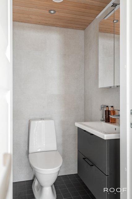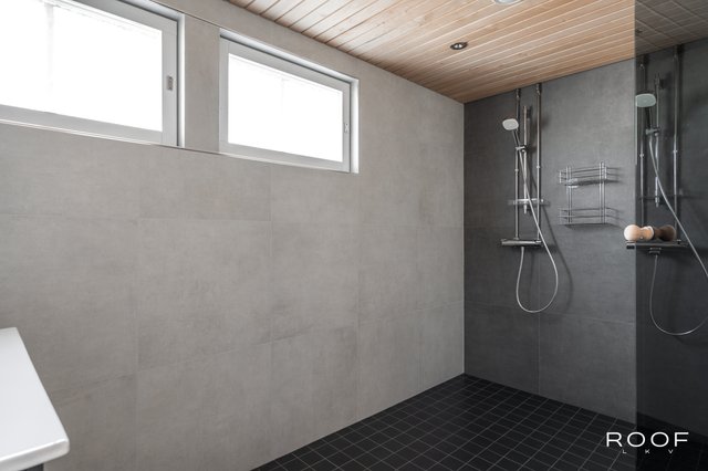 - Alakerran kylpyhuone VARUSTUS: Suihku, peilikaappi, allaskaappi, lattialämmitys. SEINÄT: Laatta LATTIA: Laatta Yläkerran kylpyhuone VARUSTUS: Wc-istuin, suihku, peili, allaskaappi, lattialämmitys. SEINÄT: Laatta LATTIA: Laatta