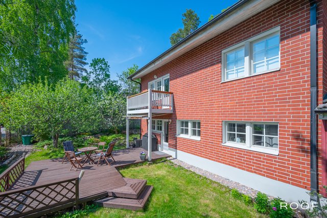 Suuri piha-alue kutsuu nauttimaan kauniista kesäpäivistä. Tilaa on niin lasten leikeille kuin aikuisten rentoutumisellekin. Kesäisin voitte järjestää perheen ja ystävien kesken grillijuhlia tai istahtaa iltaa viettämään viihtyisälle terassille.