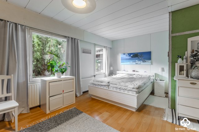 - muovimatto, toisessa makuuhuoneessa laminaatti.