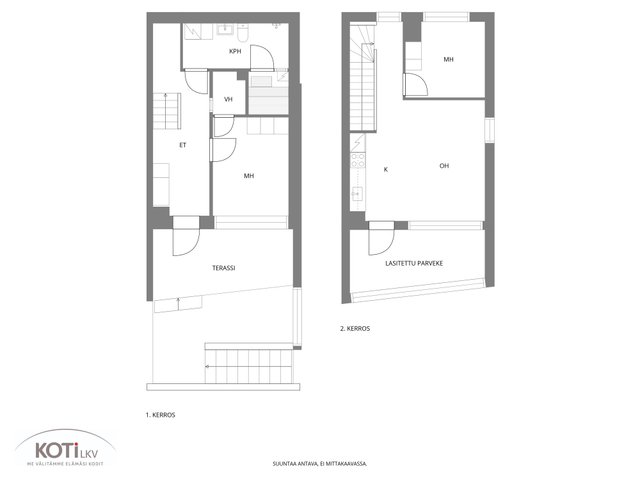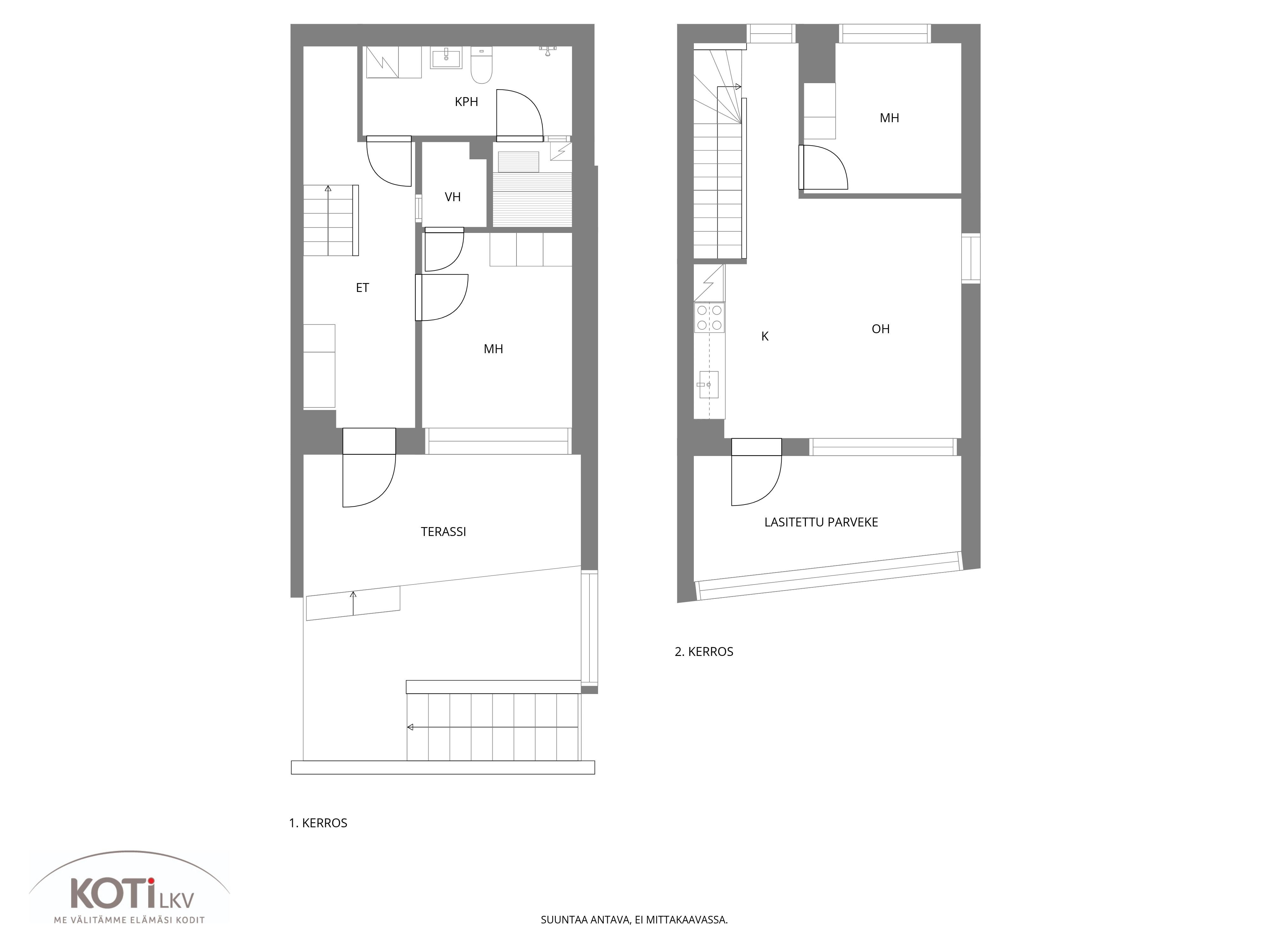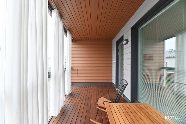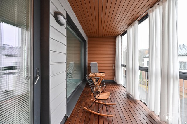 Yläkerrassa on toinen makuuhuone sekä yhtenäinen ja valoisa olohuone–keittiö–ruokailutila, jonka sydämen muodostaa laadukas Puustellin keittiö. Olohuoneesta on käynti isolle lasitetulle parvekkeelle, joka toimii lähes ympäri vuoden viihtyisänä oleskelutilana.  Asunto on kauttaaltaan erinomaisessa kunnossa, joten muuttamaan pääset ilman remonttihuolia.
