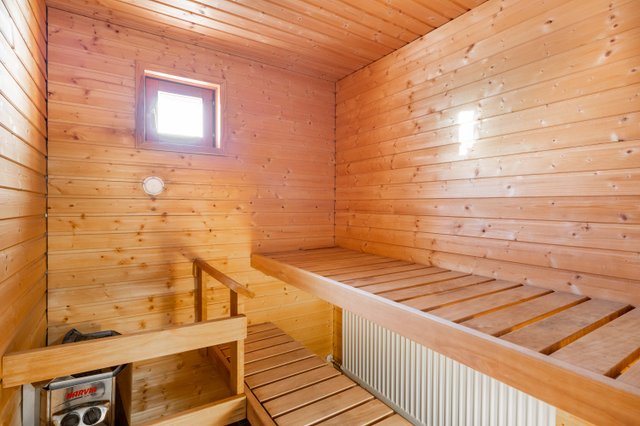 - Tilava sauna. Saunassa ikkuna. Sauna remontoitu kylpyhuoneen peruskorjauksen yhteydessä vuonna 2014.
