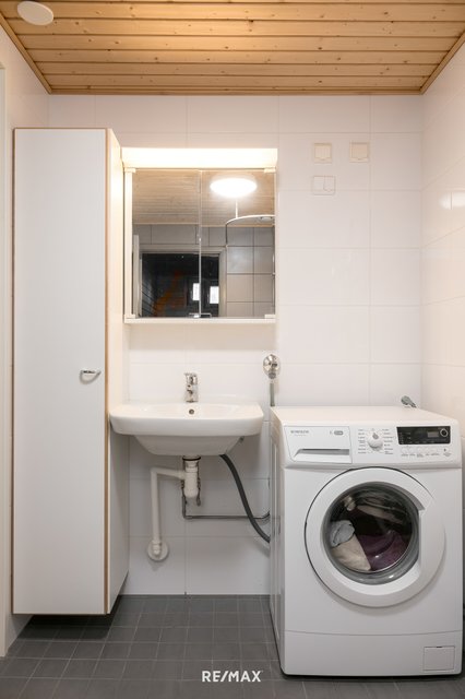 - Peilikaappi, pesuallas, pesukoneliitäntä, ja suihku