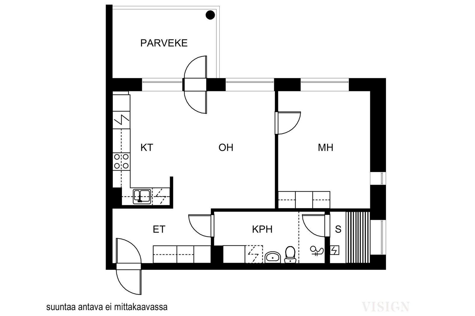 Asunnossa on tilava olohuone, josta on käynti omalle lasitetulle parvekkeelle - täydellinen paikka rentoutumiseen vaikkapa aamukahvin äärellä. Vaaleasävyiset pinnat luovat raikkaan ja avaran tunnelman, ja hyväkuntoiset materiaalit tekevät asunnosta muuttovalmiin. Keittiö on siisti ja kompakti, makuuhuoneessa on hyvin säilytystilaa.