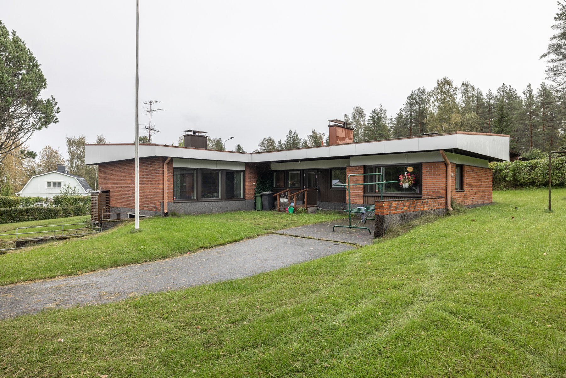 - Perusmuurit betonia, runkorakenteena tiili ja taloussiivessä puu, julkisivuverhous tiili.