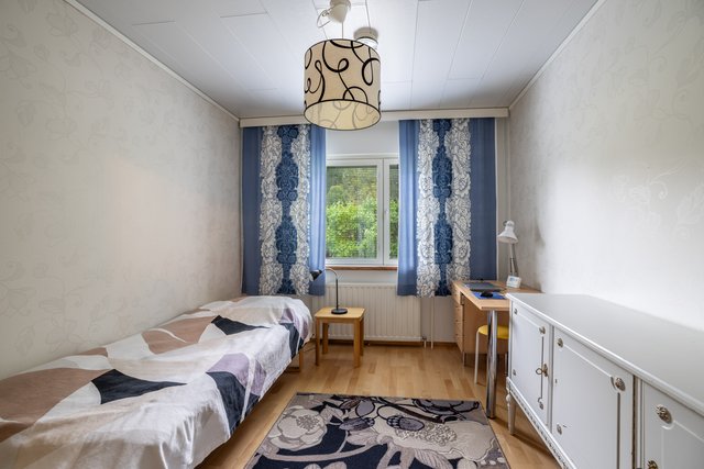 - Makuuhuoneita 2 kappaletta, lattiat parkettia, seinät tapetti / maali. Tilava työhuone toimii myös makuuhuonekäytössä ja on jaettavissa kahdeksi makuuhuoneeksi. Työhuoneen lattia parkettia, seinät tapetti / maali.