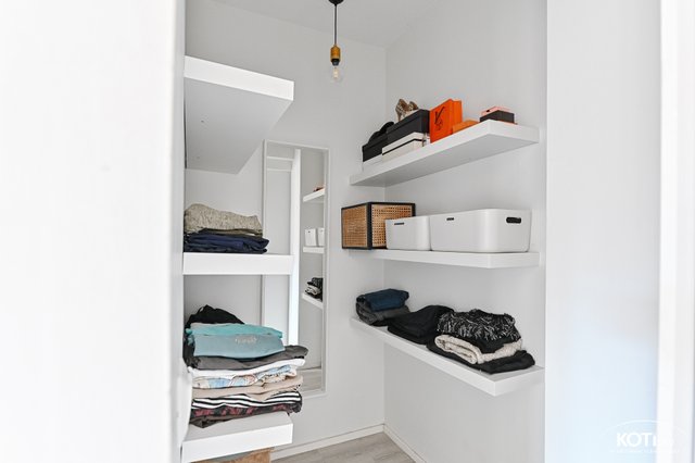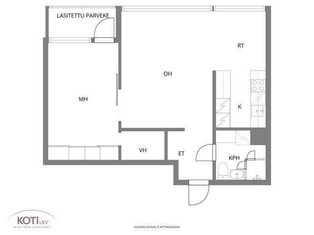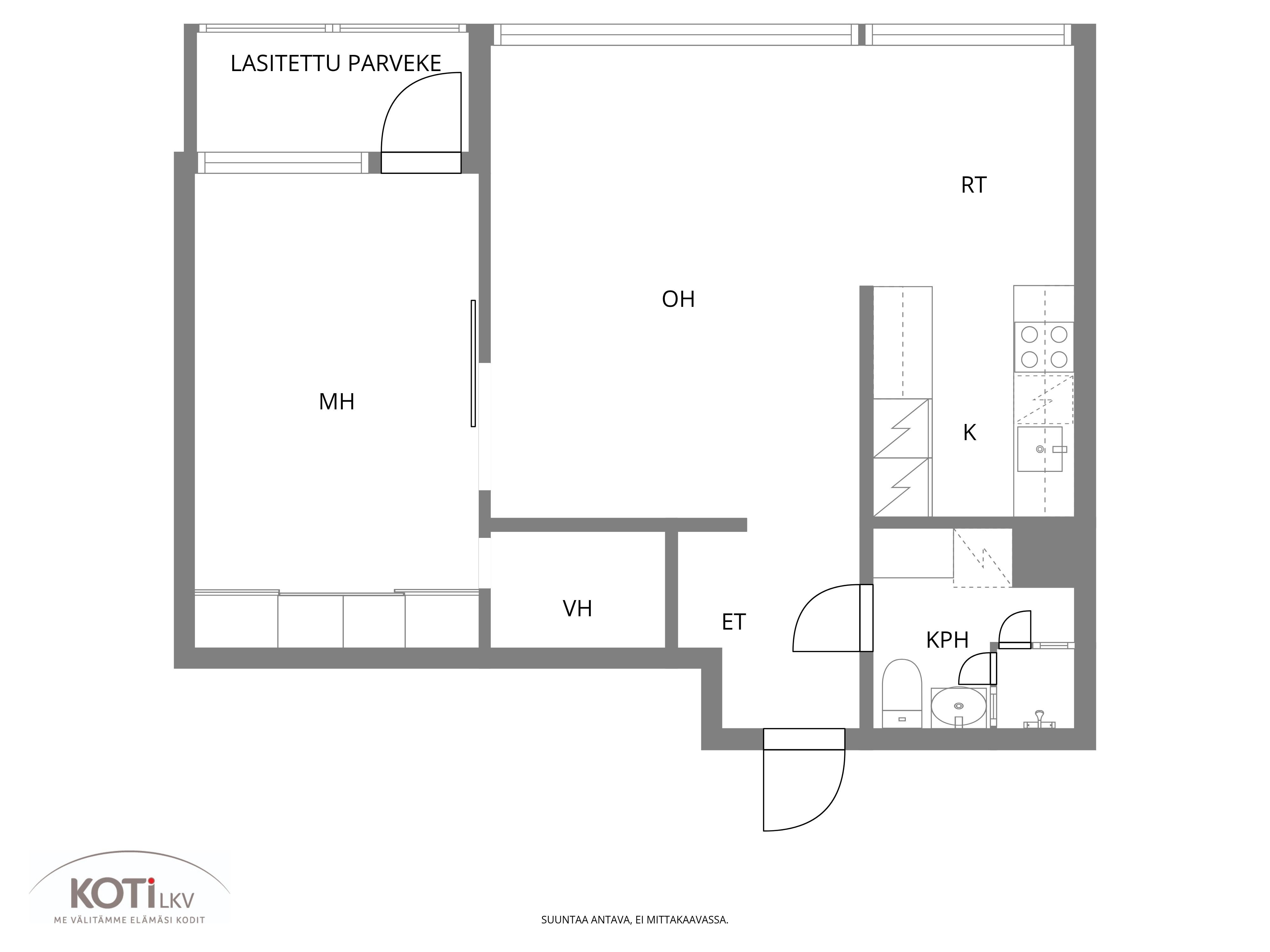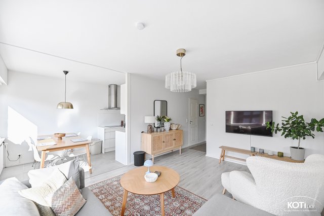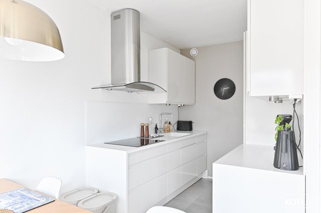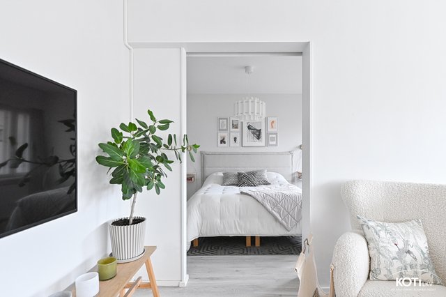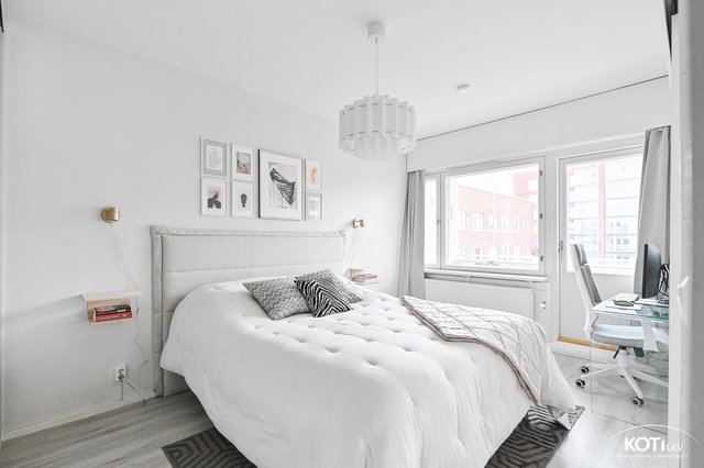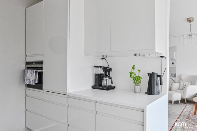 Pohjaratkaisu on erittäin toimiva: avara olohuone yhdistyy ruokailutilaan ja laadukkaaseen HTH-keittiöön muodostaen yhtenäisen kokonaisuuden. Tyylikäs kylpyhuone on uusittu putkiremontin yhteydessä v. 2021. Tilavassa makuuhuoneessa on runsaasti kaappitilaa sekä vaatehuone ja sieltä on käynti lasitetulle parvekkeelle, josta aukeavat kauniit ja vehreät näkymät.