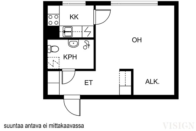 - Suihku, peili, wc-istuin, pesukoneliitäntä, ja kiinteät valaisimet