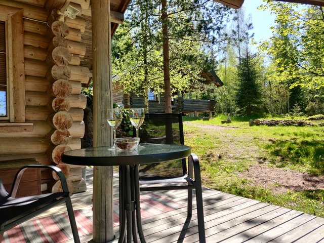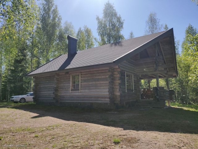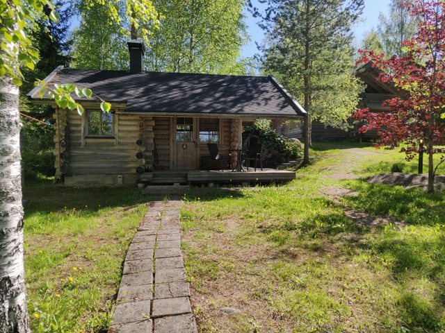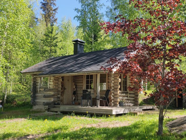 - Paikalleen käsin veistetty hirsimökki (55 m² ja saunamökki 25 m²