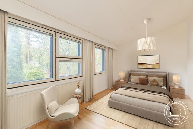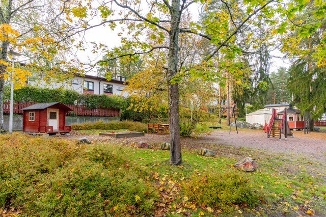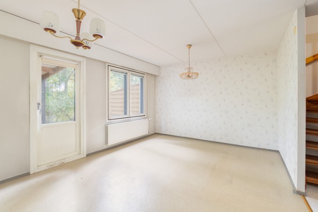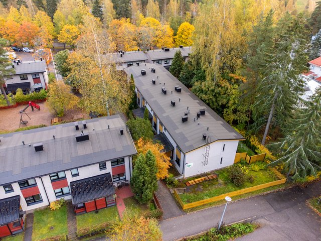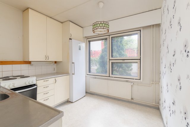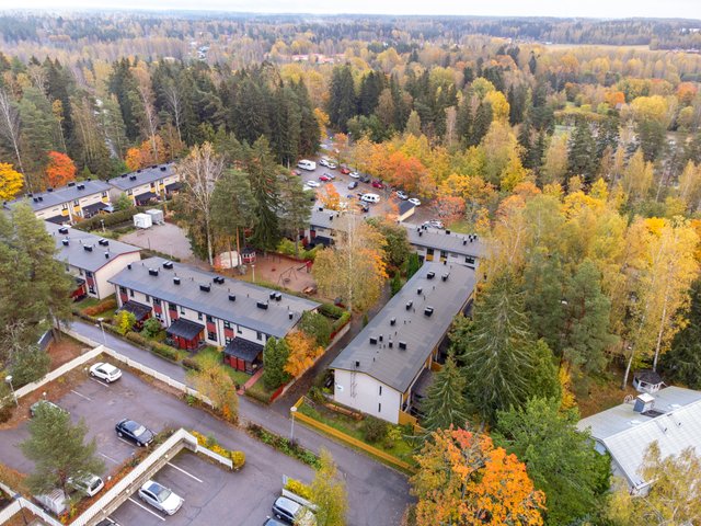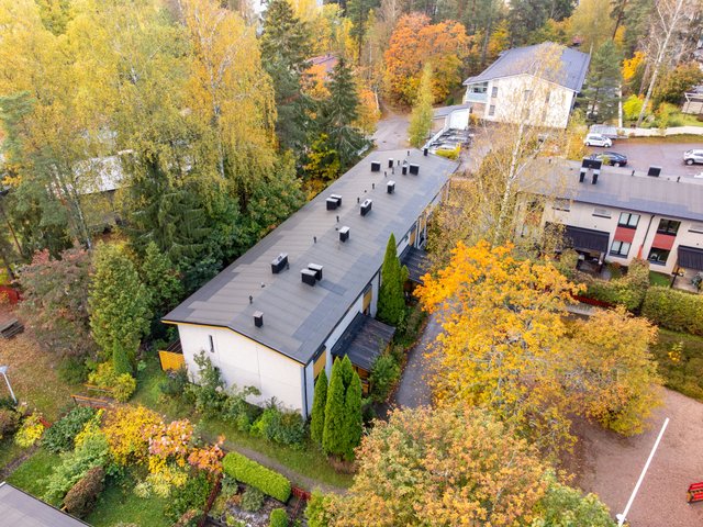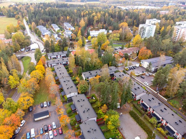 Asunto on linjasaneerauksen myötä saanut päivitetyt kylpyhuone- ja saunatilat, samalla erillinen wc on remontoitu. Kaksi makuuhuonetta tarjoavat mukavasti tilaa perheen tarpeisiin ja olohuoneen ikkunat tuovat runsaasti luonnonvaloa sisään. Keittiö ja kodin pinnat kaipaavat päivitystä, mutta pohjaratkaisu on toimiva ja säilytystilaa on jopa runsaasti. Olohuoneeseen mahtuu hyvin sohva ja ruokapöytä ja sieltä on helppo siirtyä omalle terassille nauttimaan ulkoilmasta ja vehreän suojaisan pihan rauhasta. Terassi on osittain katettu ja pikkupihalle mahtuu kivasti istutuksia.