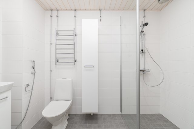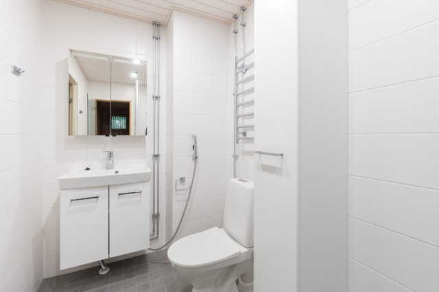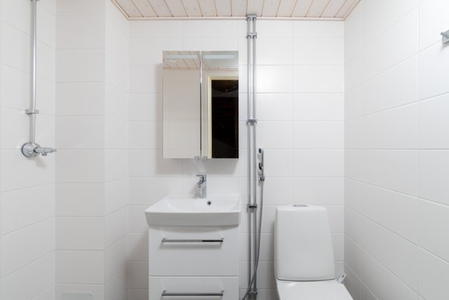- Suihku, suihkukaappi, wc-istuin, pesuallas, ja peilikaappi
