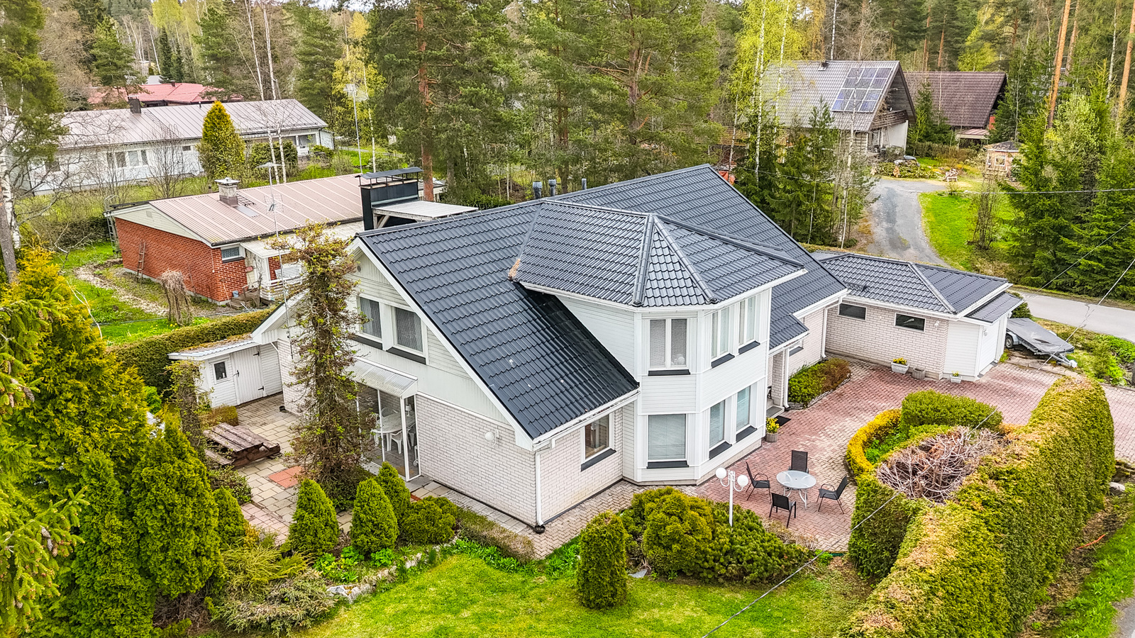 Tämä reilun kokoinen koti tarjoaa reilusti tilaa, edulliset käyttökustannukset ja kaikki mukavuudet, joita perheesi tarvitsee. Rauhallisella ja suojaisalla tontilla sijaitseva 262 m² koti on rakennettu vuonna 1978 ja laajennettu vuonna 2000, jolloin yläkerta lisättiin. Taloa on huollettu säännöllisesti ja se on juuri tehdyn kuntotarkastuksen mukaan erinomaisessa kunnossa.