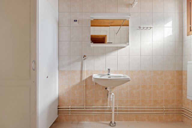 Keittiö on varusteltu nykyaikaisin laittein, kuten astianpesukoneella ja keraamisella liedellä, mikä tekee arjen askareista sujuvia. Kylpyhuone ja sauna tarjoavat rentouttavat puitteet pitkän päivän päätteeksi.