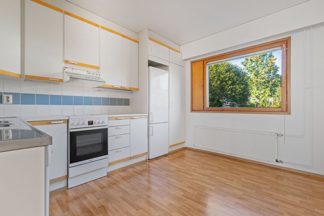 Vuonna 1990 valmistunut saunallinen asunto käsittää 78 neliötä. Asunnossa on kaksi makuuhuonetta, joissa on kauniit parkettilattiat ja maalatut seinät, jotka tuovat tilaan raikkautta. Olohuone on avara ja valoisa, ja sieltä on käynti omalle terassille, jossa voi nauttia kesäpäivistä omassa rauhassa.