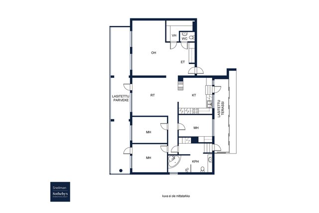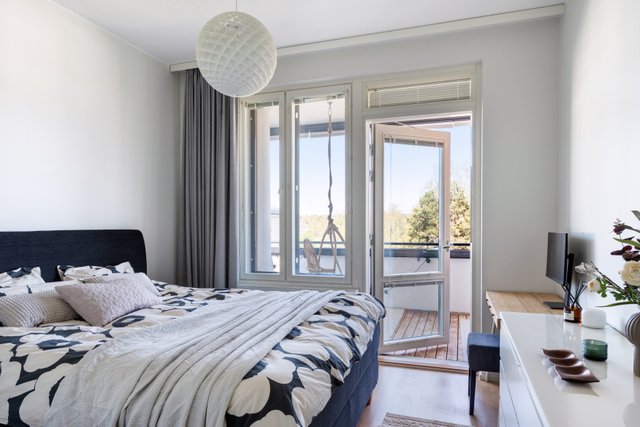 - Kolme isoa makuuhuonetta. Päämakuuhuoneesta kulku lasitetulle parvekkeelle.