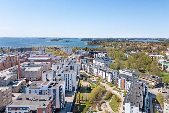 Arki sujuu tässä uudehkossa ja hyväkuntoisessa yhtiössä, jossa on panostettu yhteisten tilojen laatuun. Loistavista pesulatiloista kerhotilaan ja viihtyisästä pihapiiristä leikkialueineen aina tilaviin irtaimistovarastoihin. Vattuniemen kaupat ja muut palvelut ovat vain kivenheiton päässä ulko-ovelta ja bussi- ja metropysäkit lyhyen kävelymatkan päässä. Taloyhtiöllä on tilava autohalli, ja tämän kodin kanssa on mahdollisuus ostaa autopaikka sähkölatauspistokkeella. Parkkihallista nouset kätevästi suoraan hissillä ylimpään kerrokseen.