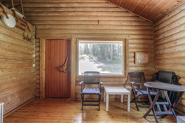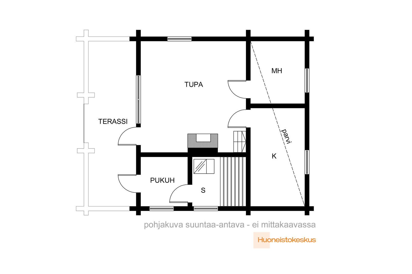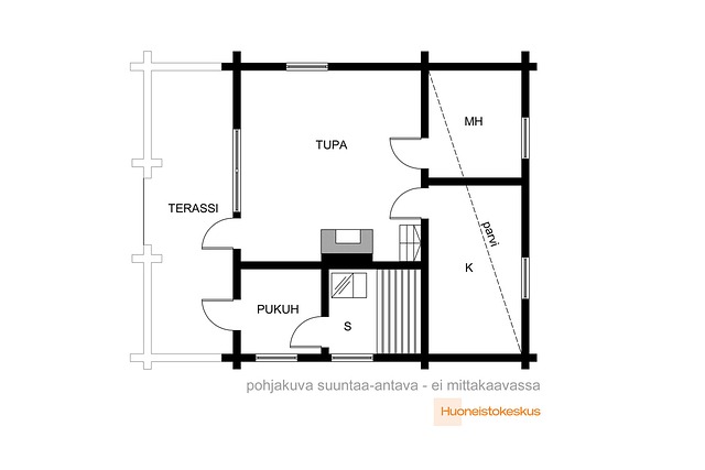 - Puukiuas, lauteet lautaa, seinät hirttä.