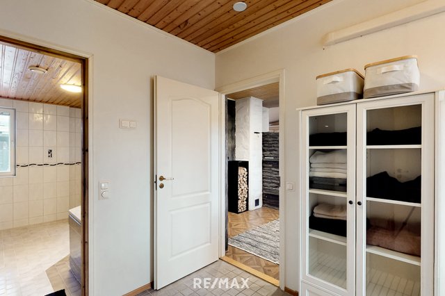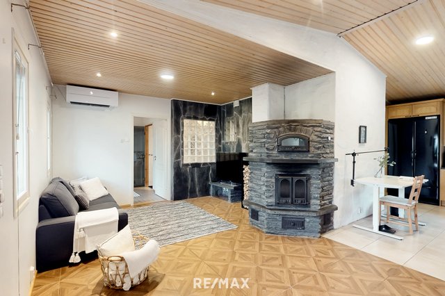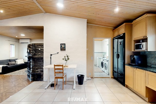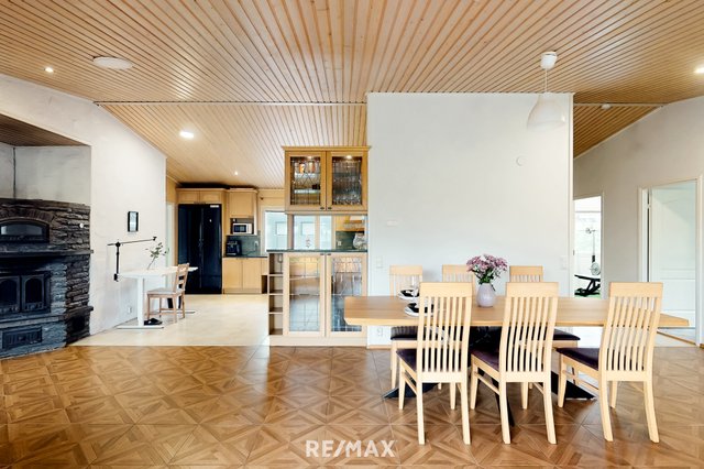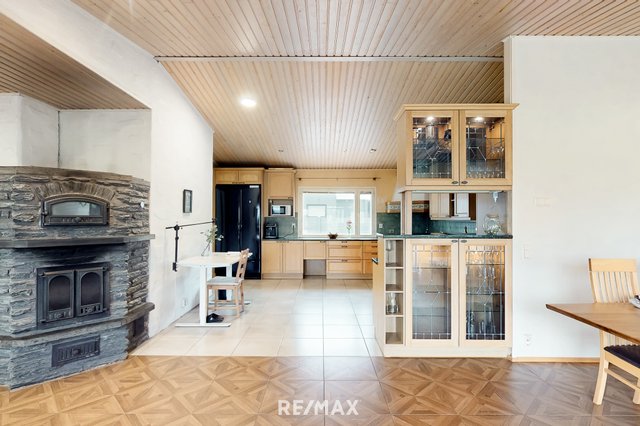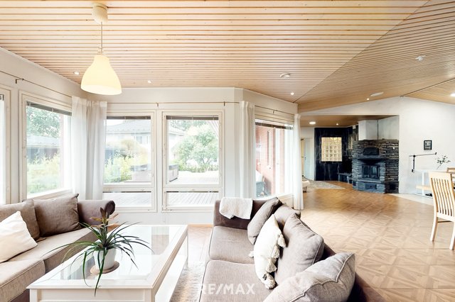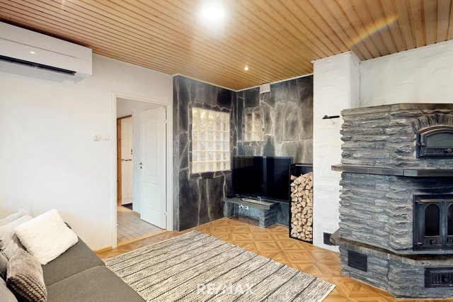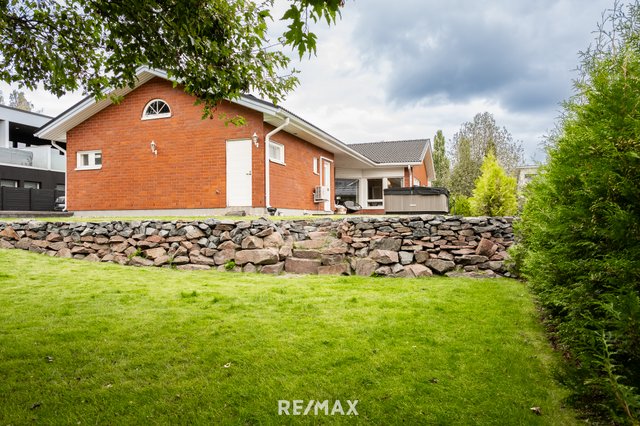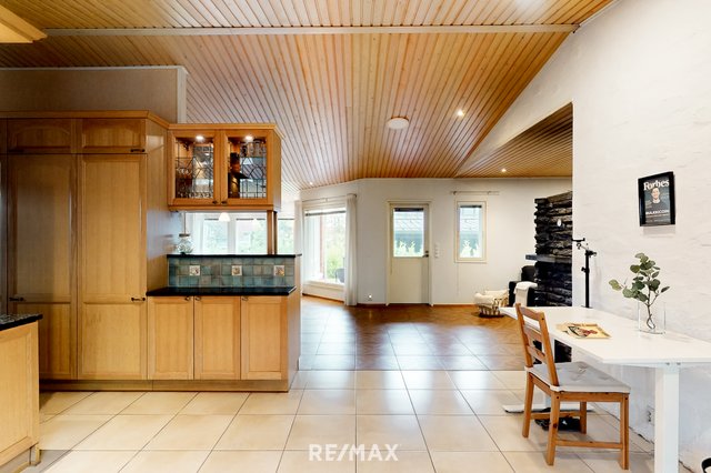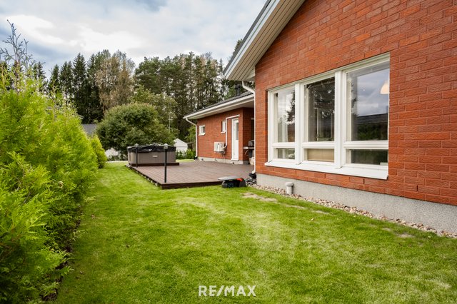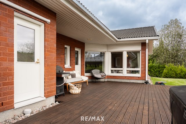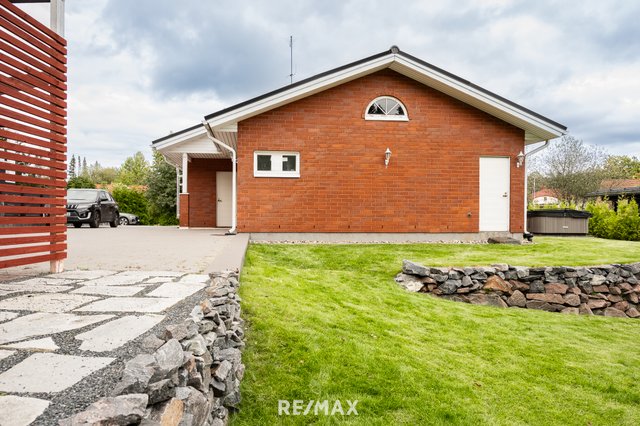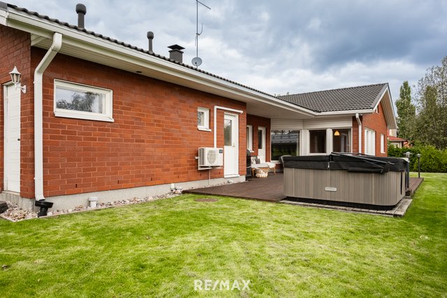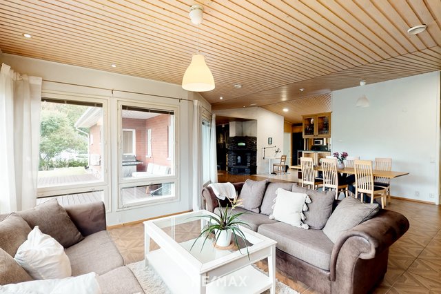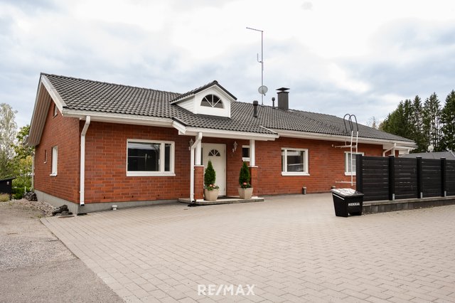 Vuonna 2000 rakennettu tiiliverhoiltu omakotitalo tarjoaa mukavaa ja käytännöllistä asumista yhdessä tasossa. Talossa on kolme tilavaa makuuhuonetta, avara olohuone sekä suurikokoinen keittiö, joka kutsuu kokkaamaan ja kokoontumaan. Olohuoneen ja keittiön väliin sijoittuu näyttävä varaava takka, jossa on myös leivinuuni – täydellinen tunnelmanluoja ja lämmönlähde viileämpiin vuodenaikoihin.