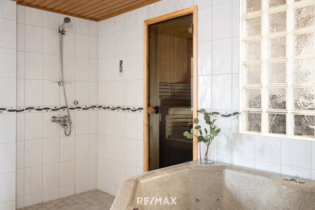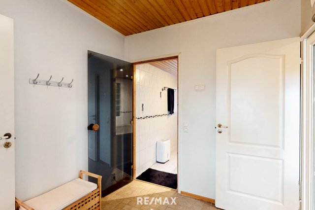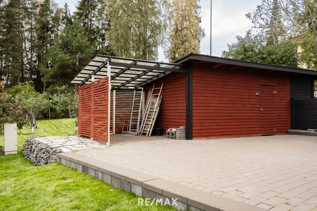 Talo sijaitsee rauhallisella ja vehreällä pientaloalueella Espoon Saunalahdessa, omalla 1004 m²:n suuruisella tonttiosuudella. Suurikokoisella terassilla voit rentoutua kylpypaljussa ja nauttia omasta rauhasta. Etupihalla sijaitsee autokatos ja erillinen varastorakennus, jotka tarjoavat runsaasti säilytystilaa ja käytännöllisyyttä arkeen. Lisäksi talossa on oma autotalli, joka soveltuu erinomaisesti niin auton säilytykseen kuin harrastetilaksi.