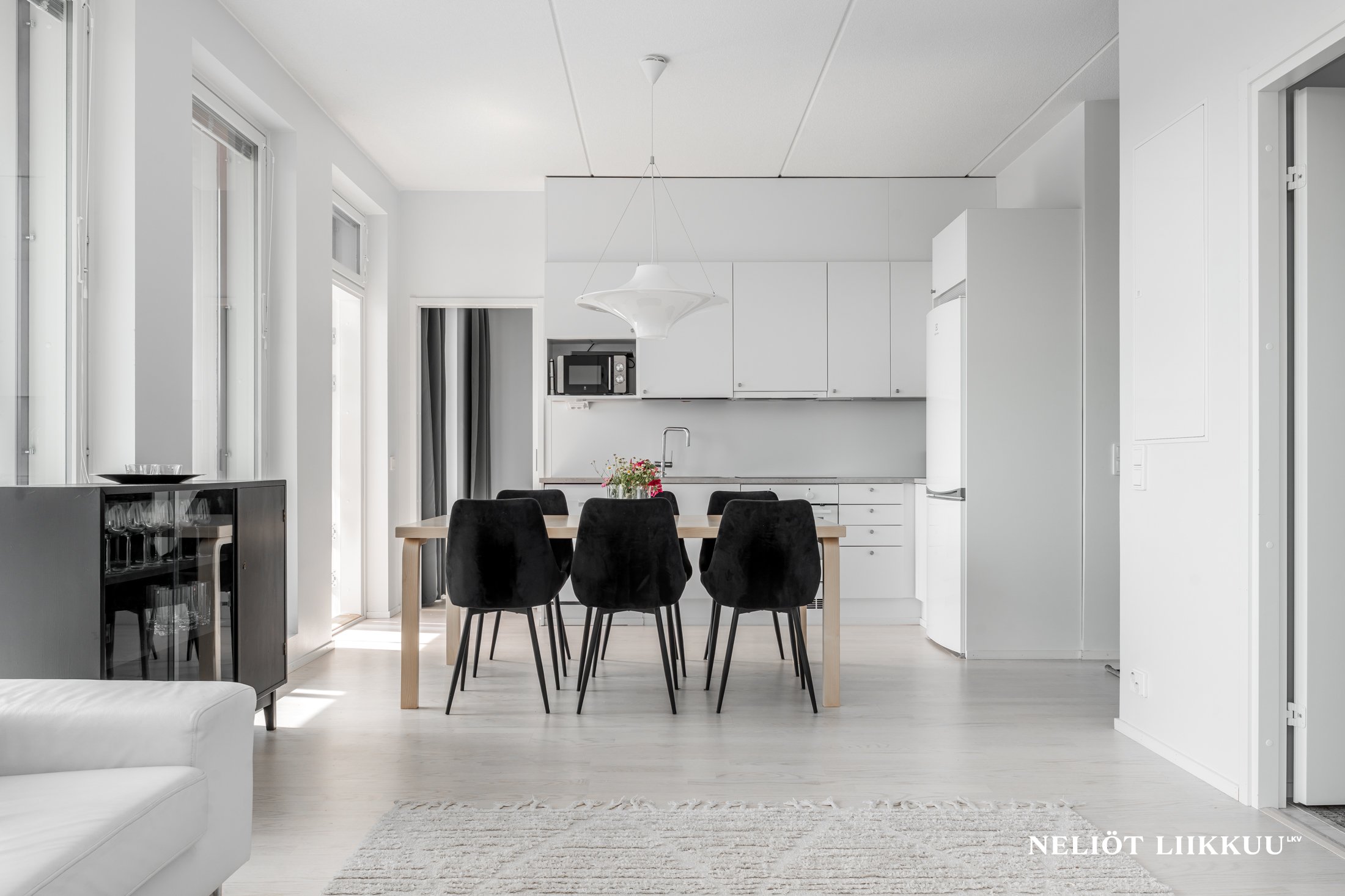 Ajattomat sisustusvalinnat sekä käytännöllinen pohjaratkaisu tekevät arjesta juhlaa. Asunnossa on kaksi tilavaa makuuhuonetta, olohuone tupakeittiöllä, kylpyhuone omalla saunalla sekä kaiken kruunaa isohko lasitettu parveke etelään. Lisäksi talonyhtiöllä on yhteinen sauna- / kerhotila seitsemännessä kerroksessa, josta mahdollisuus vuokrata oma vakiovuoro 30e/ kk hintaan.