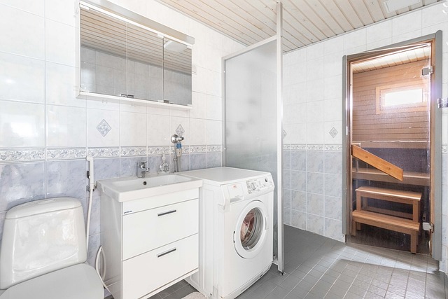 - Suihku, suihkuseinä, wc-istuin, peilikaappi, ja pesukoneliitäntä