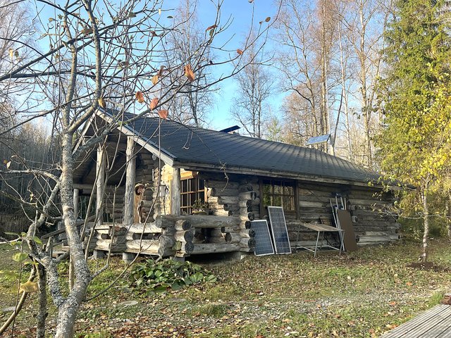 Aurinkokennoja (1 katolla ja 2 seinustalla) asennettu jossain vaiheessa. 2 akkua, johon sähkö varautuu.