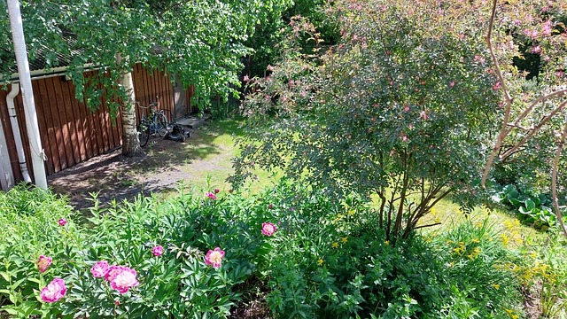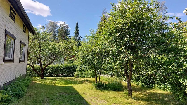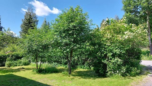 - Pääosin tasainen, nurmikkoa, monivuotisia istutuksia, omenapuita, kirsikkapuu, pensasmustikka.