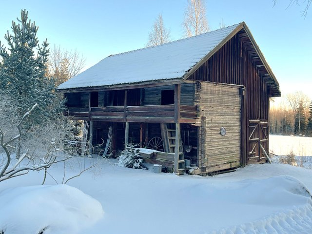 - vanha hirsiaitta, Vanhassa navetassa välttäväkuntoista säilytystilaa,