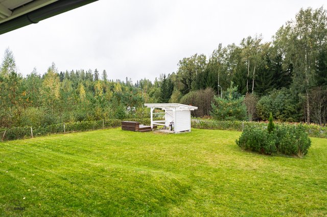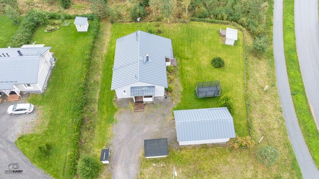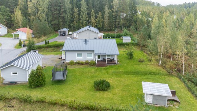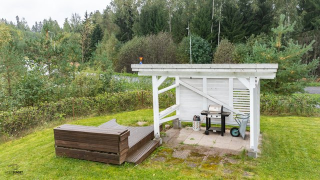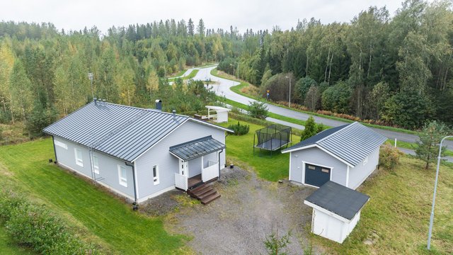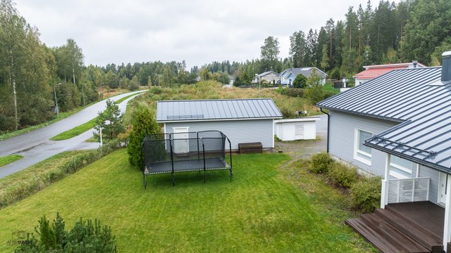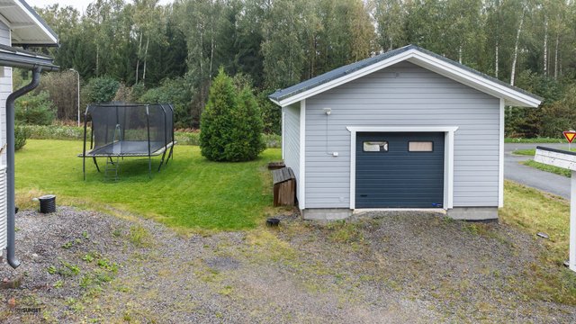 Pihapiirissä on 40m2 autotalli, grillauskatos ja puuvarasto.