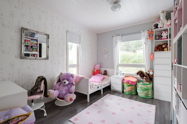 - Makuuhuoneita on neljä kappaletta, joissa laminaatti lattiat ja seinissä tapetti+maalipinnat.