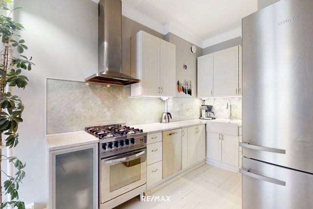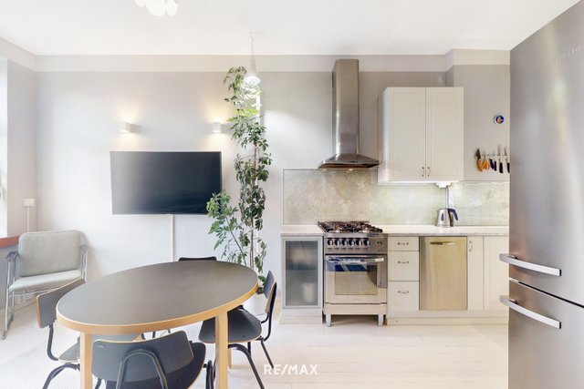 Kylpyhuone on poikkeuksellisen tilava ja remontoitu linjasaneerauksen yhteydessä vuonna 2021 – lopputuloksena tyylikäs ja toimiva kokonaisuus. Huoneiston huonekorkeus on noin 2,9 metriä, mikä tuo tilaan ilmavuutta ja arvokkuutta. Kauniit lautalattiat ja alkuperäiset ovet sekä muut yksityiskohdat henkivät vanhan talon charmia.