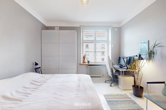 - Tilavassa makuuhuoneessa on maalatut seinät ja lautalattia. Makuuhuoneesta löytyy maaviilennyskonvektori tilan viilentämiseen.