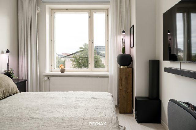 Tämä kerrassaan hurmaava 5. kerroksen täysin remontoitu koti koostuu avarista avokeittiöstä ja olohuoneesta, makuuhuoneesta, eteisestä, kylpyhuoneesta, vaatehuoneesta sekä ranskalaisesta parvekkeesta.