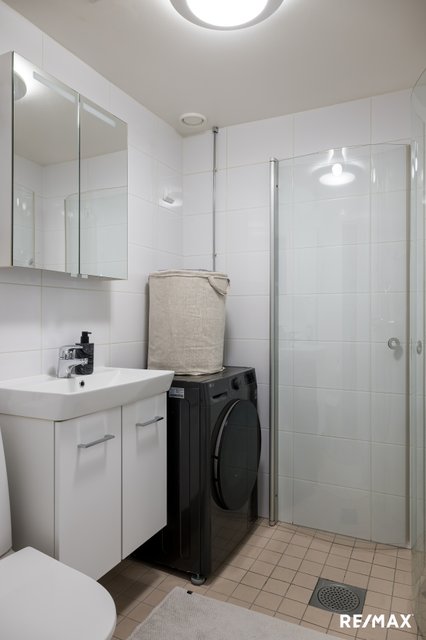 - Kylpyhuoneen lattiat ja seinät laattaa, suihkuseinä, wc-istuin, pesukoneliitäntä, allas, allaslaatikosto, peilikaappi, rättipatteri, lattialämmitys sähköllä.