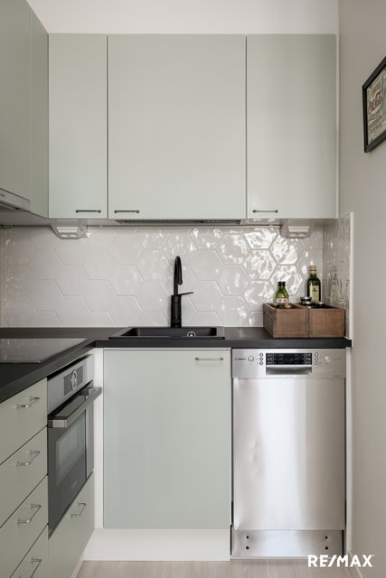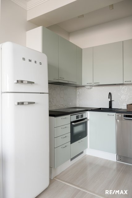 - Upeassa, 2022 uusitussa keittiössä runsaasti kaapistotilaa, induktioliesi, uuni/mikroaaltouuni, astianpesukone, Smeg jääkaappi/pakastinkaappi, lattia parkettia ja seinät maalattu.