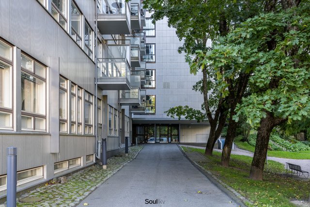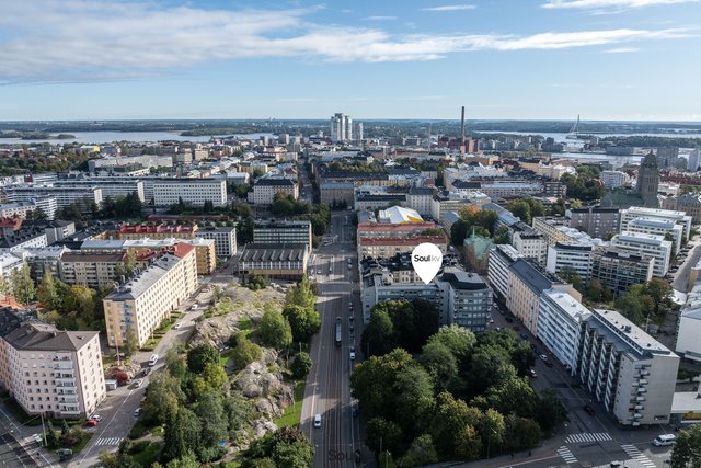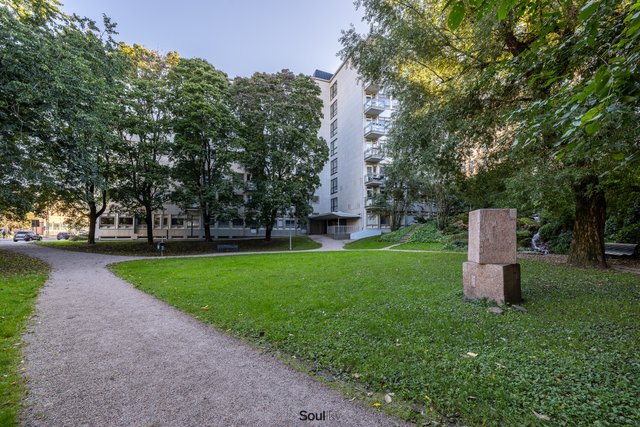 Tämä koti tarjoaa avarat näkymät länteen Tauno Palon puistoon, selkeän ja tilavan pohjaratkaisun sekä keskeisen sijainnin. Asunto sijaitsee vuonna 2008 asuinkäyttöön saneeratussa entisessä käsityöopettajien oppilaitoksessa. Vaalea parkettilattia jatkuu yhtenäisesti läpi huoneiston, ja kokonaisuus on miellyttävä ja toimiva.