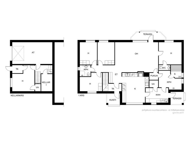 Kellarikerroksessa lisäksi nosto-ovella varustettu autotalli sekä teknisiä tiloja ja talouskellari.