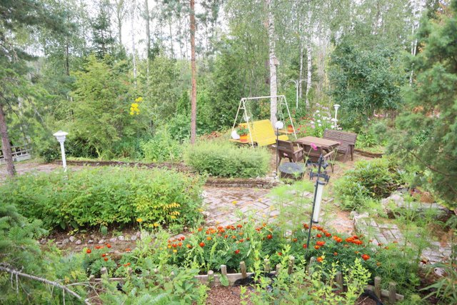 - Ihastuttava puutarhatontti, jossa paljon hyötykasveja, kauniita istutuksia sekä kivetyksiä.