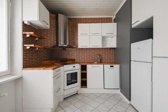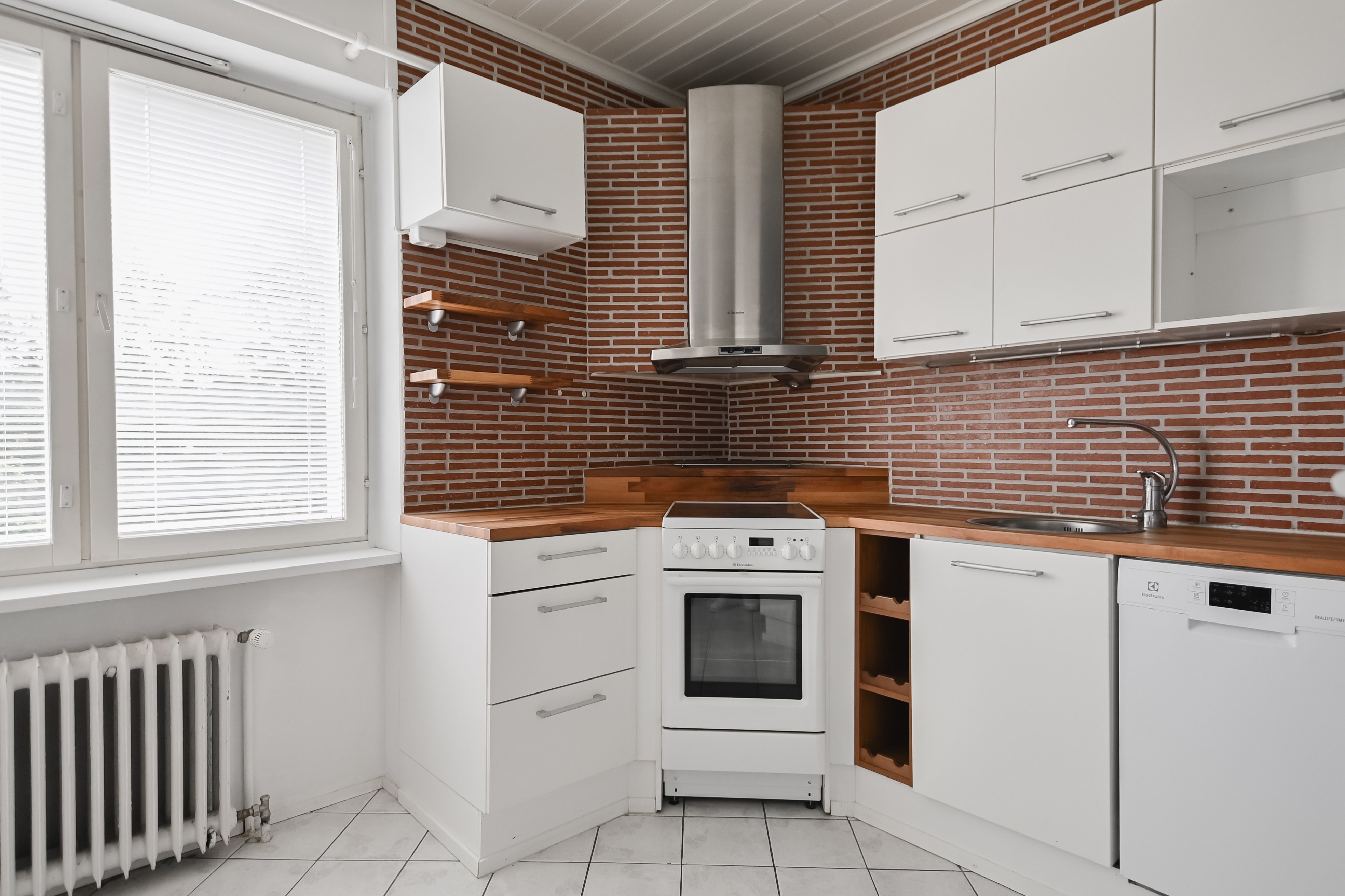 - Jenkkikaappi, liesi, liesituuletin, ja astianpesukone